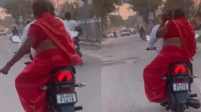वीडियो की शुरुआत बिल्कुल नॉर्मल लगती है। एक बाइक सड़क पर आराम से चल रही है। बाइक पर दिल्ली नंबर की प्लेट लगी हुई है। आगे की सीट पर एक अंकल बाइक चला रहे हैं और पीछे उनकी साथी महिला आराम से बैठी हैं। देखने वालों को लग रहा था कि सब कुछ शांति से चल रहा है, लेकिन अचानक माहौल पूरी तरह बदल जाता है। कुछ ही सेकंड में महिला का गुस्सा इतना बढ़ जाता है कि वह पीछे से बैठे-बैठे अंकल की पीठ पर जोर-जोर से मुक्के बरसाने लगती है। यह नजारा देखते ही किसी को भी हंसी आ जाए क्योंकि यह सीन किसी बॉलीवुड फिल्म के झगड़े वाले सीन जैसा लग रहा था।