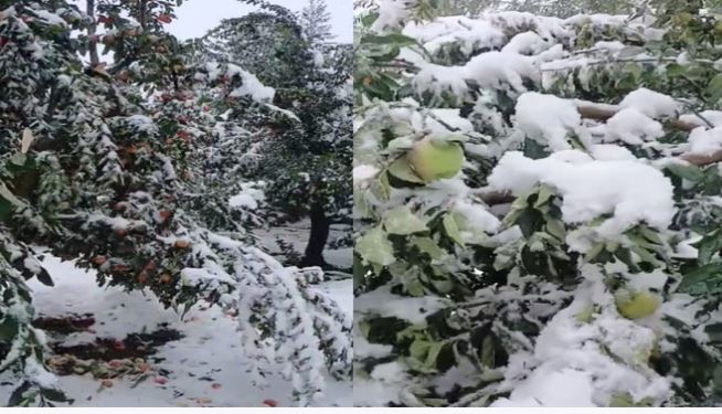 हिमाचल प्रदेश में बदले मौसम के बीच सात साल बाद पहाड़ों पर अक्तूबर के पहले हफ्ते में बर्फबारी दर्ज हुई है। चार दिनों से राज्य के कई इलाकों में भारी बारिश और बर्फबारी से ठंड बढ़ गई है। लाहौल-स्पीति, कुल्लू और चंबा के ऊंचे इलाकों में बर्फ की मोटी चादर बिछ गई है। कड़ाके की ठंड से लोग घरों में दुबकने को मजबूर हैं। लाहौल में असामयिक बर्फबारी आफत बन गई है। पिछले चार दिनों से लगातार जारी बर्फबारी से सेब से लदे पेड़ों को भारी नुकसान हुआ है। कई जगहों पर सेब के बगीचों में टहनियां टूट गईं और फल भी गिर रहे हैं। बागवानों के चेहरे पर चिंता की लकीरें पड़ गई हैं। प्रदेश के कई भागों में आज भी बारिश हो रही है। शिमला में भी दोपहर तक रुक-रुककर बारिश जारी रही।